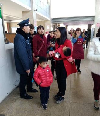 2月25日(正月初十)中午1點(diǎn),閬中客運(yùn)中心旅客熙熙攘攘、人來(lái)人往、十分繁忙,進(jìn)站旅客忙著購(gòu)票、安檢、檢票乘車。突然,在行包安檢處,一個(gè)小男孩哭著找媽媽,急得不行。 安檢工作人員蔡爽、劉浩宇和胡家偉見(jiàn)狀,立即將小男孩帶到值班室。一邊安慰小男孩,給小男孩端來(lái)開(kāi)水,穩(wěn)定情緒;一邊仔細(xì)詢問(wèn)小男孩姓名、家長(zhǎng)手機(jī)號(hào)碼等信息。由于小男孩比較緊張,所問(wèn)信息一個(gè)都答不上來(lái)。“小男孩的家長(zhǎng)肯定非常著急,必須盡快幫助找到他的家長(zhǎng)。”劉浩宇見(jiàn)此情形說(shuō)道,并隨即向安全科長(zhǎng)姚波進(jìn)行了報(bào)告。姚波了解情況后馬上會(huì)同客運(yùn)科通過(guò)語(yǔ)音廣播和候車廳電子顯示屏將小男孩尋找媽媽的事情進(jìn)行滾動(dòng)播出。 十五分鐘后,一手抱小孩的女旅客急匆匆地趕到行包安檢處,小男孩馬上迎上去喊“媽媽、媽媽!”在看到自己走散的孩子后,這位女旅客激動(dòng)地對(duì)車站工作人員說(shuō):“謝謝你們,謝謝你們,真是把我急死了!”看到走散的母子團(tuán)聚,客運(yùn)中心的工作人員臉上露出了開(kāi)心的微笑。 (姚波)