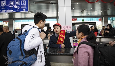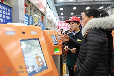 “小紅帽”引導(dǎo)旅客刷身份證進(jìn)站乘車