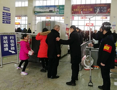 引導(dǎo)農(nóng)民工對行包進行安檢