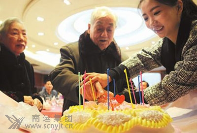 2014年11月7日南運(yùn)集團(tuán)老紅軍曹守成過(guò)百歲大壽,追憶世紀(jì)人生,分享甜蜜蛋糕。