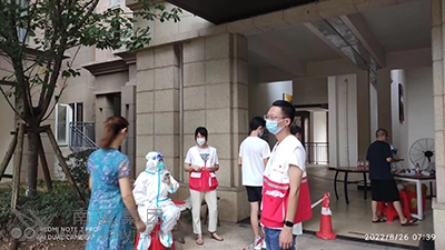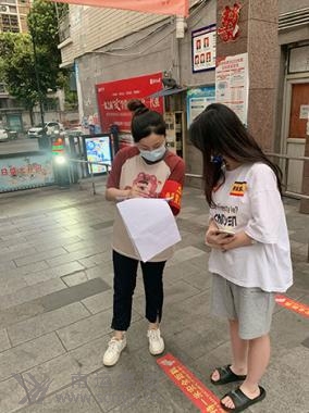 旅游分公司黨員張菁(右一)參加社區(qū)抗疫維護秩序