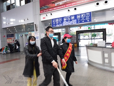 一路呵護盲人旅客