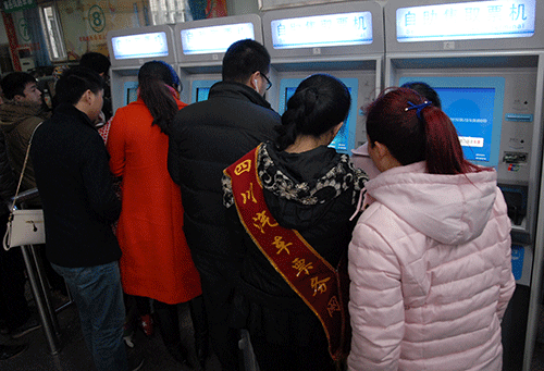 雖然車站在市轄三區(qū)和郵政網(wǎng)點(diǎn)設(shè)置了50個站外售票點(diǎn),但售票廳9個售票窗口一直排著購票的旅客隊伍。車站臨時增加了1個出售成都和1個出售廣東、深圳、汕頭的售票車處。車站自助取票機(jī)由原來的4臺增設(shè)為6臺,旁邊張貼著印有二維碼、支付寶等條目標(biāo)的“南充客運(yùn)站官方網(wǎng)站”,在四川汽車票務(wù)網(wǎng)兩名工作人員和1名“小紅帽”站務(wù)人員的引導(dǎo)下,讓旅客通過手機(jī)掃二維碼購買車票。一名去宜賓的年輕旅客,拿出手機(jī),輕輕掃了一掃二維碼,便成功地取到了由南充去宜賓的汽車票,他高興地說:“互聯(lián)網(wǎng)+掃二維碼,快捷地就買了車票,不用排隊了,真方便。”售票大廳里排隊購票的秩序井然,但沒有看見售票廳象往年那樣排隊購票的隊伍排到售票廳外面的現(xiàn)象了。