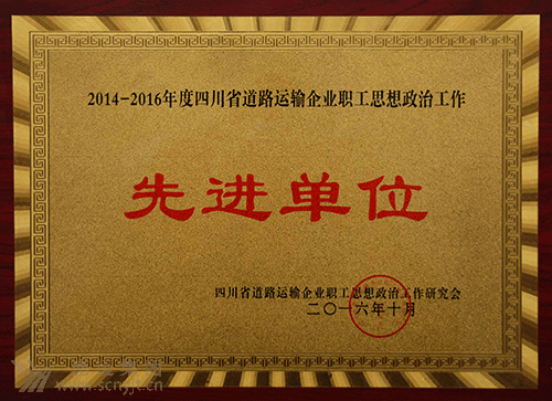 南運(yùn)集團(tuán)榮獲“2014-2016年度四川省道路運(yùn)輸企業(yè) 職工思想政治工作先進(jìn)單位”稱號(hào)