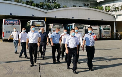 市委副書記王善平(右二)檢查南充市城北汽車客運(yùn)站國慶安全生產(chǎn)工作。