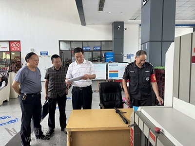 四川省公安廳交警總隊(duì)原副總隊(duì)長(zhǎng)、二級(jí)警務(wù)專員王建民(右二)率領(lǐng)省公安廳安全檢查組一行,深入閬中分公司及所屬閬中汽車站檢查成都大運(yùn)會(huì)期間的安全保障工作。
