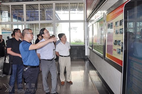 李茂林(右二)、陳光華(右一)在南充汽車客運(yùn)站 觀看“安康杯”競(jìng)賽活動(dòng)展板