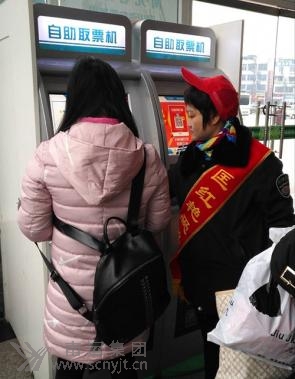 “小紅帽”引導(dǎo)旅客取票