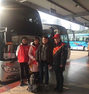 2月17日戊戌年正月初二下午15:00左右,南充汽車客運站售票大廳里發(fā)生了奇怪的一幕。一名背著背包的小男孩,來到一臺自助取票機前,將手里拿著的身份證放在取票機上后,手指在屏幕上不停的敲擊,程序雜亂無章,且一直沒有離開。 這一情景,被正在旁邊協(xié)助旅客操作網(wǎng)上取票的嘉陵青年志愿者袁子惠發(fā)現(xiàn)。她主動上前問道:“小朋友,你好,請問你需要買哪里的車票?需要我?guī)椭鷨幔?/span>”男孩一言不發(fā),繼續(xù)點擊著屏幕。見此情況,袁子惠發(fā)現(xiàn)有點不對勁,便迅速找來“匡紅艷愛心班”成員“小紅帽”站務人員林政大姐。 林政見到男孩后,發(fā)現(xiàn)他孤身一人,神色異常,便先后用口語、手語、繪畫進行溝通,經(jīng)過耐心細致的工作,在民警的幫助下,終于查清男孩名叫莫嵐,家住儀隴縣芭蕉鄉(xiāng)西門村七組。 經(jīng)與其家人聯(lián)系得知,孩子神經(jīng)有問題,屬于離家出走,隨身除了藥品外,只有幾元零錢。家人正著急地四處找他,請求車站能將孩子送回老家儀隴金城。林政立即將此事匯報給了值班站長,在與其家人溝通約定后,經(jīng)申請同意用“愛心班”愛心基金為其購買返程車票一張。下午17:20,林政與袁子惠將孩子護送上南充至儀隴金城的班車,并反復囑咐駕乘人員“一定要將男孩安全載到終點站,并由家人接手后才能離開。” 事后,據(jù)駕乘人員反饋情況,男孩的父親準時在車站接到了人,已安全到家。得知這一消息,林政與袁子惠一直揪著的心,才放松下來,露出了會心的微笑。 (胡燕)