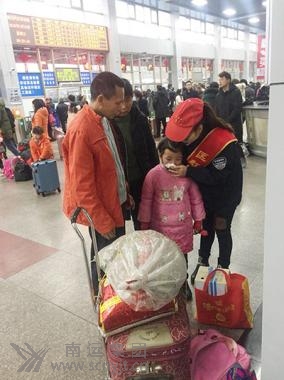“媽媽!爸爸!我的媽媽吔”,“小朋友,別哭,來,阿姨給你擦擦鼻涕,幫你找媽媽哈!” 這是2019年1月30日發(fā)生在南充汽車客運站候車大廳里的一幕。當日上午10點左右,南充市嘉陵區(qū)金鳳鎮(zhèn)沙壩村的趙治兵、王曉均夫婦帶著5歲的女兒來到車站,準備乘座由該站發(fā)往巴中的客車。進入候車廳后,夫妻兩因上廁所,將女兒一人丟在候車廳等候。由于王曉均患有癲癇病,需要丈夫幫扶,致時間稍長。女兒見爸媽未歸,心里慌亂,開始四處尋找,進而啼哭呼喊。這時,匡紅艷愛心班“小紅帽”站務(wù)人員楊琴發(fā)現(xiàn)了她,立即上前將孩子抱起,一邊安慰,一邊擦鼻涕的把孩子帶到咨詢臺前,通過廣播發(fā)布尋人信息,將孩子的父母找到!爸x謝,謝謝你們車站工作人員”。孩子的爸爸拉著孩子的手激動的說!安挥弥x,這是我們應(yīng)該做的”。楊琴回答道。“她的媽媽有癲癇病,我要幫她,所以時間耽誤久了”。趙治兵解釋道。楊琴向他說:“你也不容易,有什么需要,請告訴我們,我們盡力幫助,出門在外,你們一定要注意安全,祝你們一家人旅途愉快”!爸x謝!給阿姨說再見”,趙治兵夫婦說著帶孩子乘車離開了車站。 匡紅艷愛心班在站黨支部的指導(dǎo)下,自春運開始以來,積極開展愛心助力活動,她們利用工作間歇時間和休息時間,有組織地幫助旅客和過往群眾,先后為旅客尋找和看護孩子3人次,協(xié)助辦理購票、進站乘車等58人次,為旅客解困2人次。獲得了旅客群眾的廣泛贊譽。 (李曉光 胡燕)