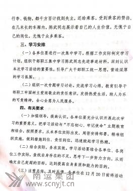 2019年11月10日西充縣道路運(yùn)輸管理局向各道路運(yùn)輸企業(yè)印發(fā)了《關(guān)于號召全縣道路運(yùn)輸從業(yè)人員向陳武同志學(xué)習(xí)的通知》(西運(yùn)管辦〔2019〕92號)。西充分公司及時(shí)召開向四川省“最美公交司機(jī)”陳武同志學(xué)習(xí)動員大會,認(rèn)真?zhèn)鬟_(dá)縣運(yùn)管局通知精神,立即掀起向陳武同志學(xué)習(xí)的熱潮,積極爭當(dāng)愛崗敬業(yè)、爭創(chuàng)先進(jìn)、立足本職、文明服務(wù)、勇于擔(dān)當(dāng)、樂于助人的陳武式南運(yùn)人!