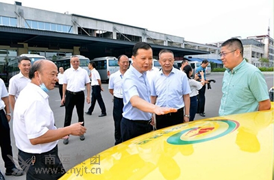 寧堅(jiān)(右三)一行在營(yíng)山汽車客運(yùn)站“金通工程”車輛前,對(duì)營(yíng)山12328助力脫貧攻堅(jiān)開展情況給予充分肯定。