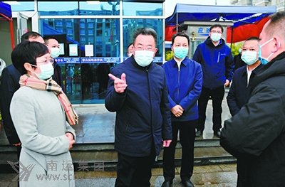 市委書記劉強(qiáng)(中)在南運(yùn)集團(tuán)營山汽車客運(yùn)站檢查疫情防控工作。