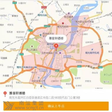 南充和岳池城區(qū)均可享受上門接送服務(wù),但具體請以訂車時顯示的接送范圍為準(zhǔn)哦!粉色區(qū)域為接送范圍。