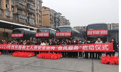 回家時(shí)歸心似箭,離家時(shí)依依不舍,車站的站臺(tái)見證了多少的聚散離別,也承載了太多的希望和夢想。春節(jié)假期結(jié)束,迎來了節(jié)后返崗高峰,2月20日上午由西充縣農(nóng)民工服務(wù)中心牽頭,縣運(yùn)管局、南運(yùn)集團(tuán)西充分公司聯(lián)合在西充汽車客運(yùn)中心舉行了2024年西充縣務(wù)工人員安全返崗“春風(fēng)服務(wù)”啟動(dòng)儀式。 啟動(dòng)儀式上,縣農(nóng)民工服務(wù)中心副主任熊子揚(yáng)傳達(dá)了縣委、政府對外出務(wù)工的兄弟們的關(guān)懷和祝福,并親切的叮囑大家:一要安全,你們都是家庭的頂梁柱,注意自身和他人的安全;二要學(xué)習(xí),虛心向發(fā)達(dá)城市學(xué)習(xí)專業(yè)的管理和技術(shù),提升自身競爭力;三要回報(bào)家鄉(xiāng),將先進(jìn)的管理經(jīng)驗(yàn)和資金技術(shù)帶回家鄉(xiāng)投資興業(yè)?h農(nóng)民工服務(wù)中心貼心的為大家準(zhǔn)備了方便面、牛奶、礦泉水、牙刷、牙膏等愛心大禮包。 隨后,西充汽車客運(yùn)中心4臺(tái)54座干凈整潔的南運(yùn)“春風(fēng)服務(wù)”返崗專車載著200余名外出務(wù)工人員帶著對親人的牽掛和對美好生活的向往再次踏上離別的豪華大巴,重復(fù)著昨天的務(wù)工故事。 春運(yùn)期間,西充汽車客運(yùn)中心認(rèn)真研判市場,合理的運(yùn)輸組織,將“金通工程”和城鄉(xiāng)公交車有效結(jié)合,形成“出家門、上車門、進(jìn)廠門”、“點(diǎn)對點(diǎn)”的運(yùn)輸服務(wù),滿足了旅客安全、快捷的出行需求,有效的減少了客源流失。 截止2月20日,西充汽車客運(yùn)中心“春風(fēng)服務(wù)”農(nóng)民工返崗共計(jì)發(fā)班95趟次,運(yùn)輸旅客5035人次。 (西充分公司 趙燕妮)