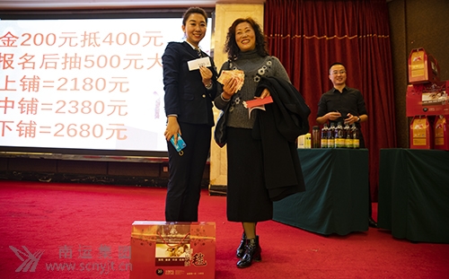現(xiàn)場報(bào)名參加夕陽紅九日游的來賓抽獎(jiǎng)得到500元現(xiàn)金