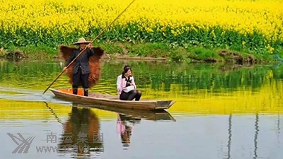 游客悠閑地坐在船上,任憑艄公在河中蕩舟,一邊呼吸著清新的空氣,一邊咪著眼睛享受浪漫時(shí)光,好不愜意。